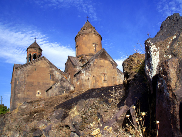 The monastery of Saghmosavank dates back to 1215 when the church of St. Sion was founded by prince Vache Vachutian. The monastery complex was enlarged by adding spatious narthex (around 1250) and the book depository (1255) which was attached to the little church of St. Godmother (1235).